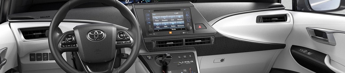 Oftentimes it’s the thoughtful touches that make the biggest difference. That’s why Mirai comes standard with a host of high-tech features designed to bring more convenience to every drive. The integrated backup camera23 includes a projected path feature, making it easier to back into those tight spots. A heated steering wheel and windshield wiper de-icer help bring warmth when things get chilly. And the frameless auto-dimming rearview mirror includes a HomeLink®28 universal transceiver for easier access to your compatible gates, garages and more.
