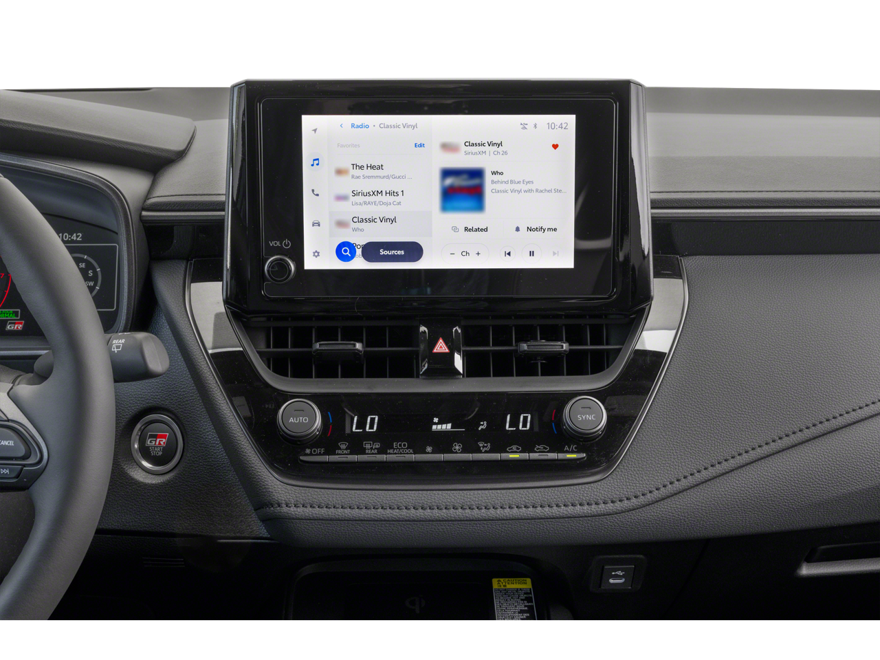 - Gloss-black front grille with GR badge and functional air ducts