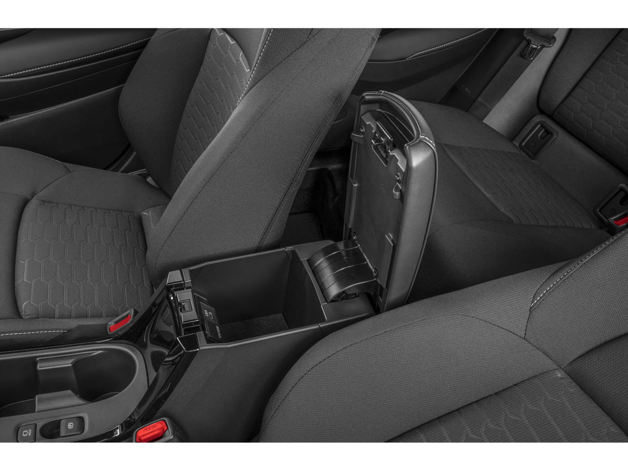 - Covered center console, armrest, and storage