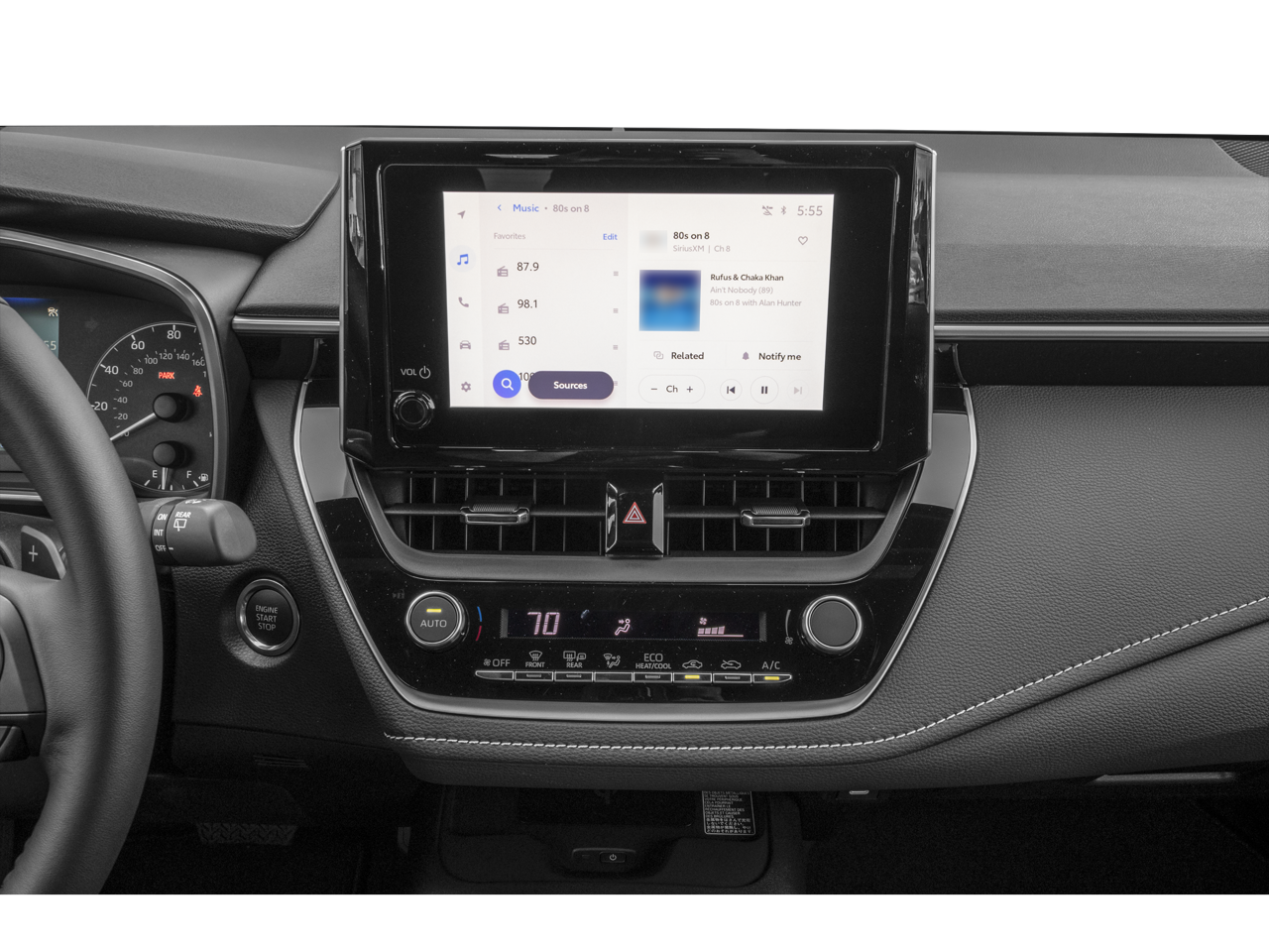 - 8-in. Toyota Audio Multimedia with 6 speakers, with wireless Apple CarPlay® & Android Auto™ compatibility, SiriusXM® 3-month trial subscription. See toyota.com/connected-services for details.