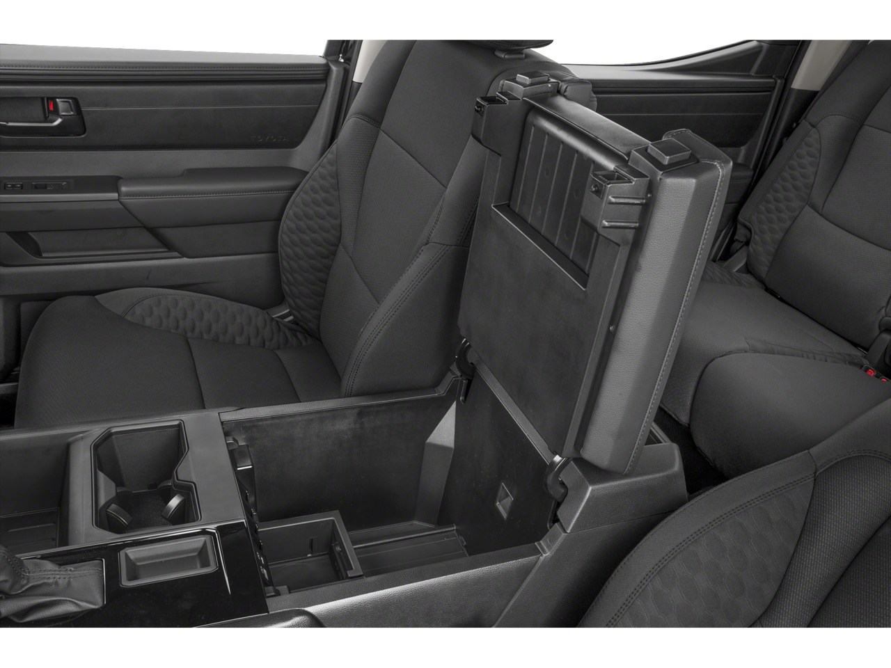 - Fixed center console with gated shift lever, driving controls, four cup holders, and center storage bin