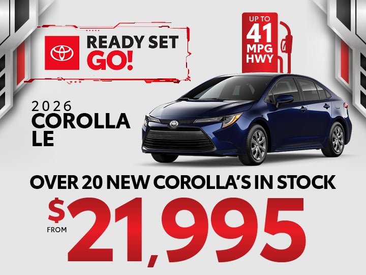 2026 Corolla Model 1852: $349/mo. for 39 months with approved credit, not all will qualify. $0 customer down payment. Due at signing includes first month’s payment plus tax, tag, title, $899 dealer fee, and add ons (these charges represent costs and profit to the dealer for items such as inspecting, cleaning, and adjusting vehicles, and preparing documents related to the sale or lease), acquisition fee and inception charges.) $0 security deposit. Lessee responsible for maintenance, repairs and excess mileage over 12,000 miles/year at $0.15/mile. Early lease termination fee may apply. Offer cannot be combined. See dealer for complete details. Offers Expire 3/31/2026.