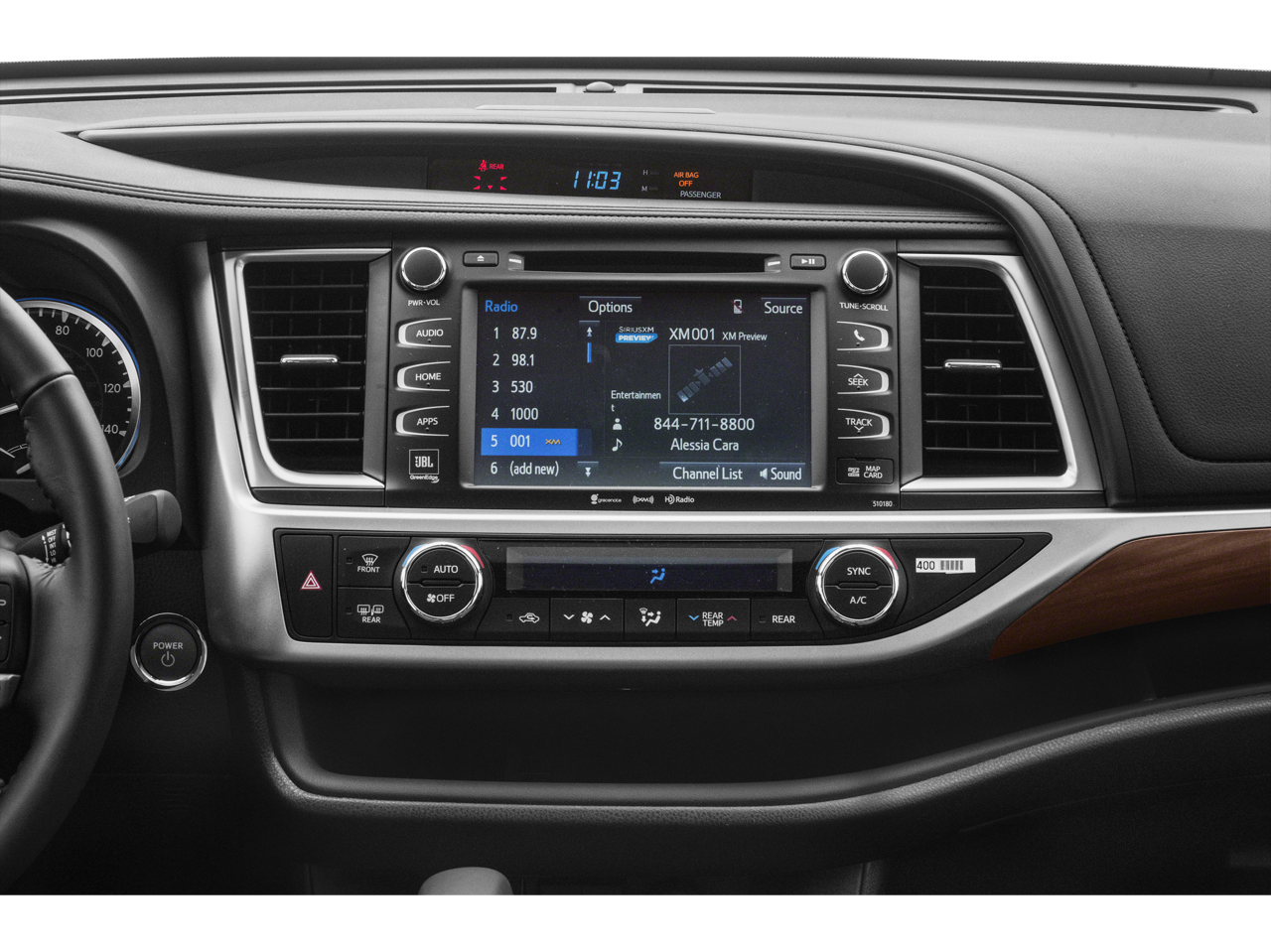- Radio: Entune Premium JBL Audio w/Nav & App Suite -inc: the Entune Multimedia Bundle (8" high resolution touch-screen w/split screen display, AM/FM CD player, MP3/WMA playback capability, 12 JBL GreenEdge speakers, auxiliary audio jack, USB 2.0 port w/iPod connectivity and control, advanced voice recognition, hands-free phone capability, phone book access and music streaming via Bluetooth® wireless technology), Siri Eyes Free, Entune App Suite, Intelligent Touch controls, SiriusXM Satellite Radio w/3-month complimentary SiriusXM All Access trial, HD Radio, HD Radio predictive traffic and Doppler weather overlay, AM/FM cache radio, Gracenotes album cover art and integrated backup camera display w/dynamic gridlines